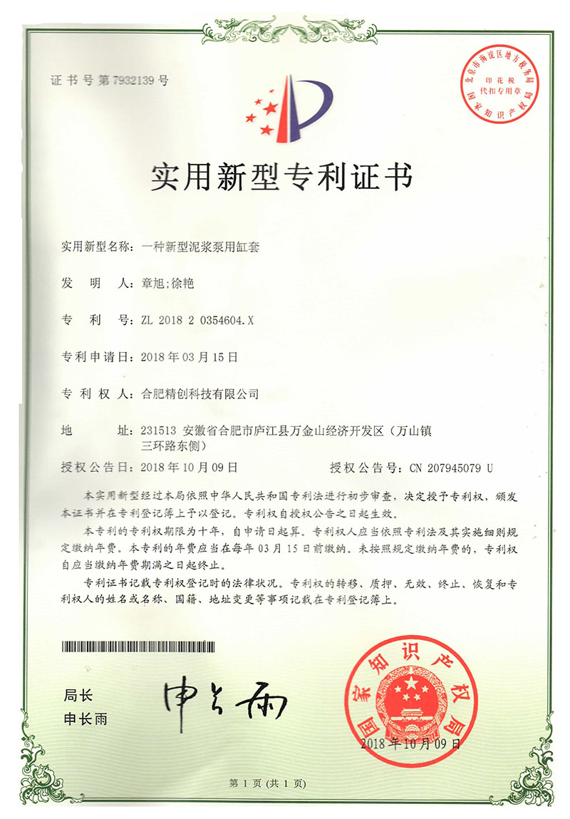 (2018實(shí)用新型)一種新型泥漿泵用缸套